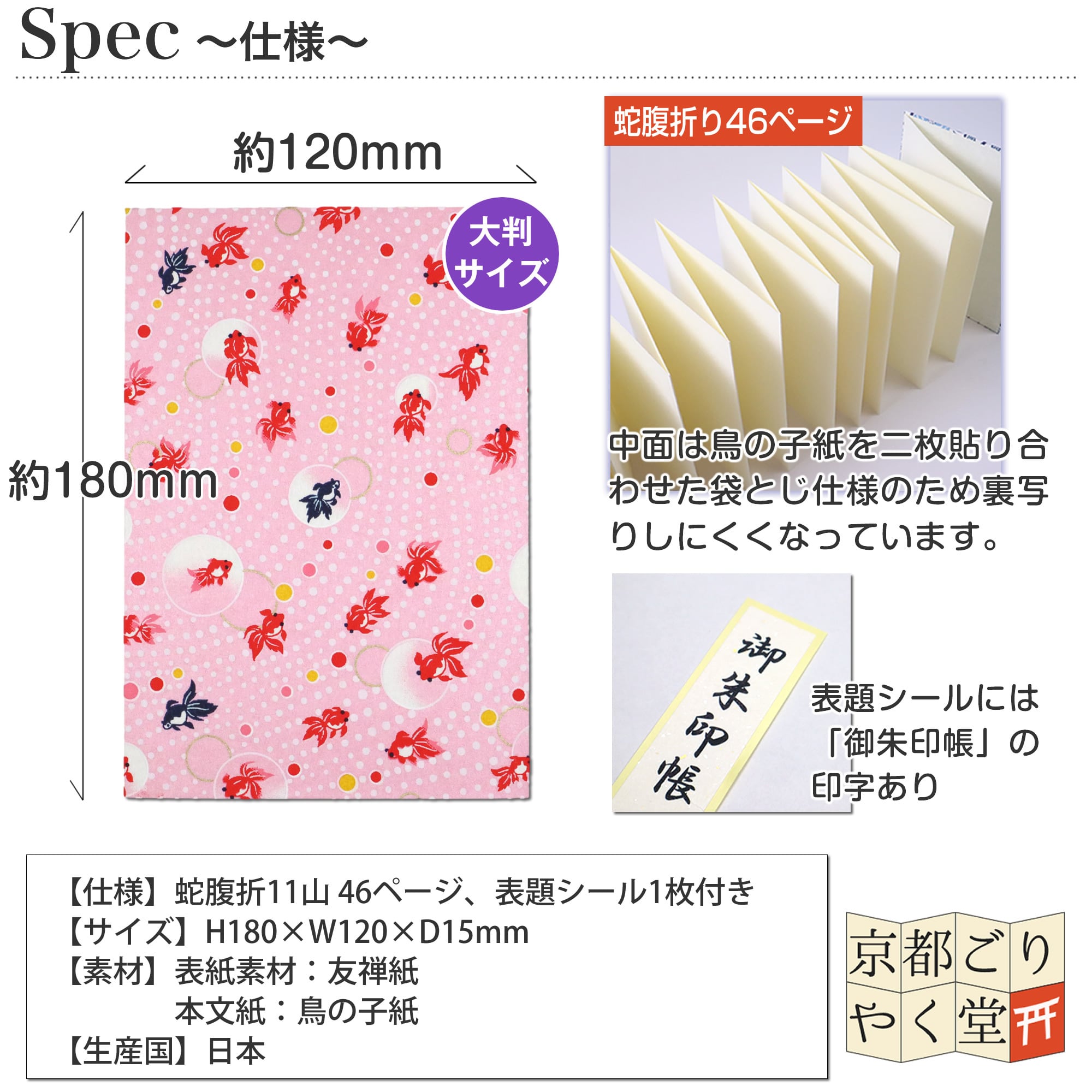 あいらしき御朱印帳 水玉と金魚(ピンク) 大判サイズ