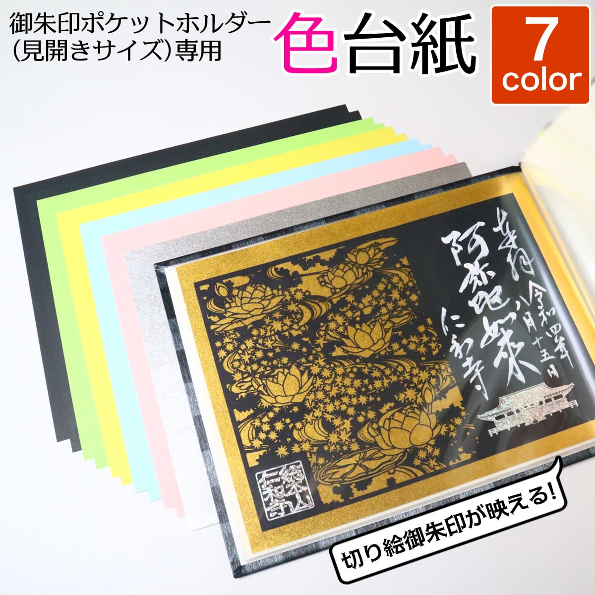 当店「京都ごりやく堂」で販売している【御朱印ポケットホルダー20ポケットタイプ(見開きサイズ)】専用の色台紙(中紙)です。