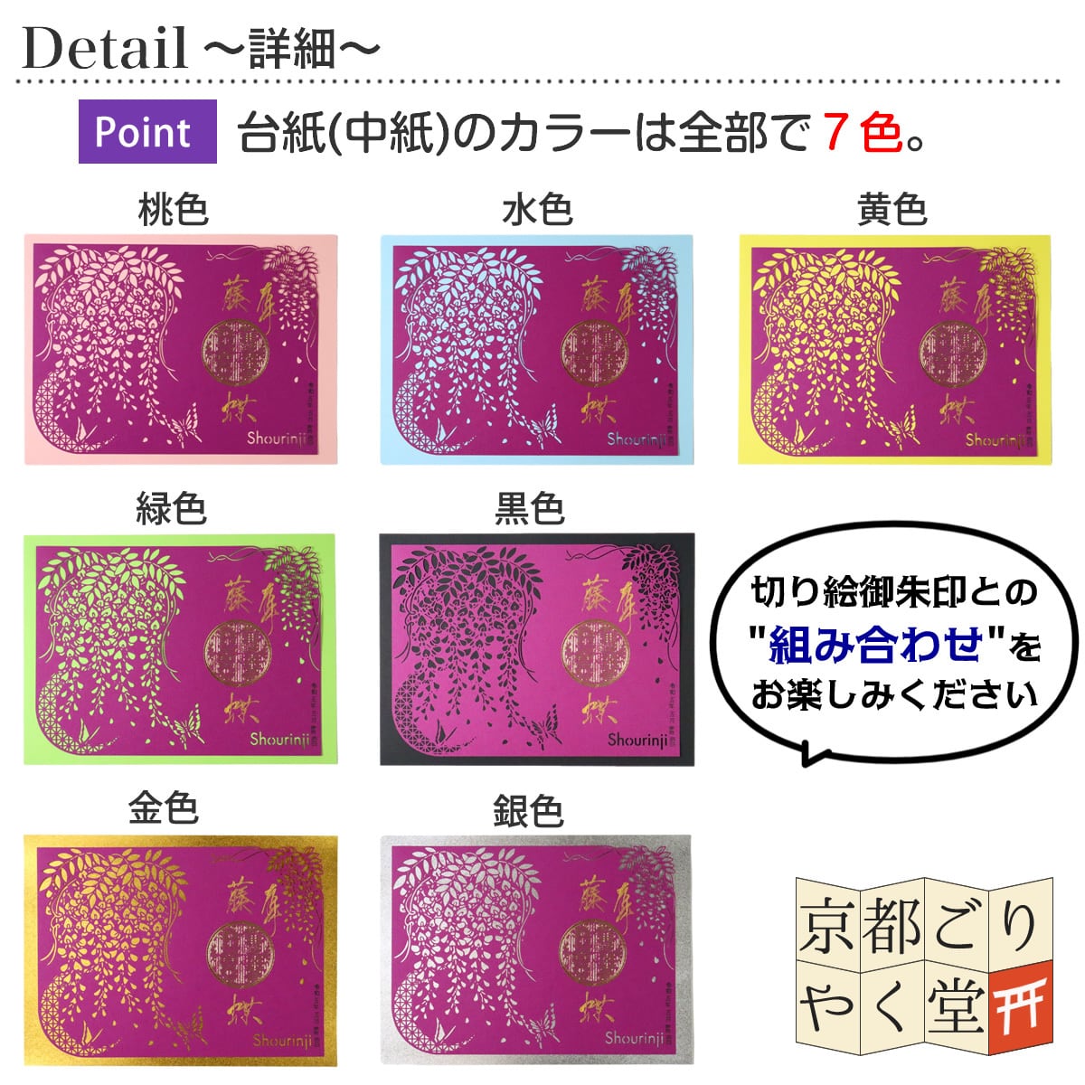 色台紙(中紙)のカラーは、七色をご用意。