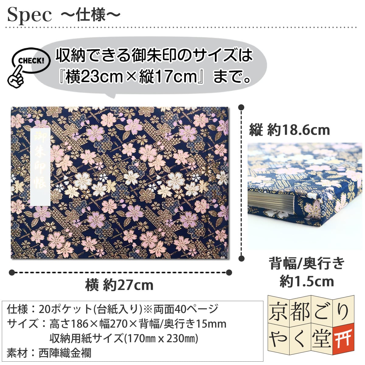 ※一部大きな御朱印は、ポケットに入らない場合があります。(収納できる御朱印サイズ:170×230mmまで)