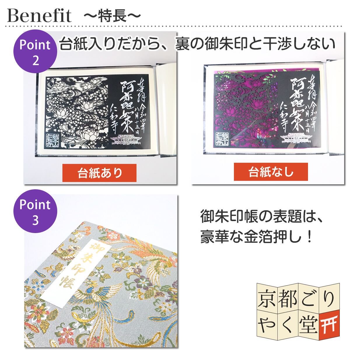 社寺のご朱印だけでなく神社の由緒書きやお寺のパンフレット、おみくじなども入れることができます。