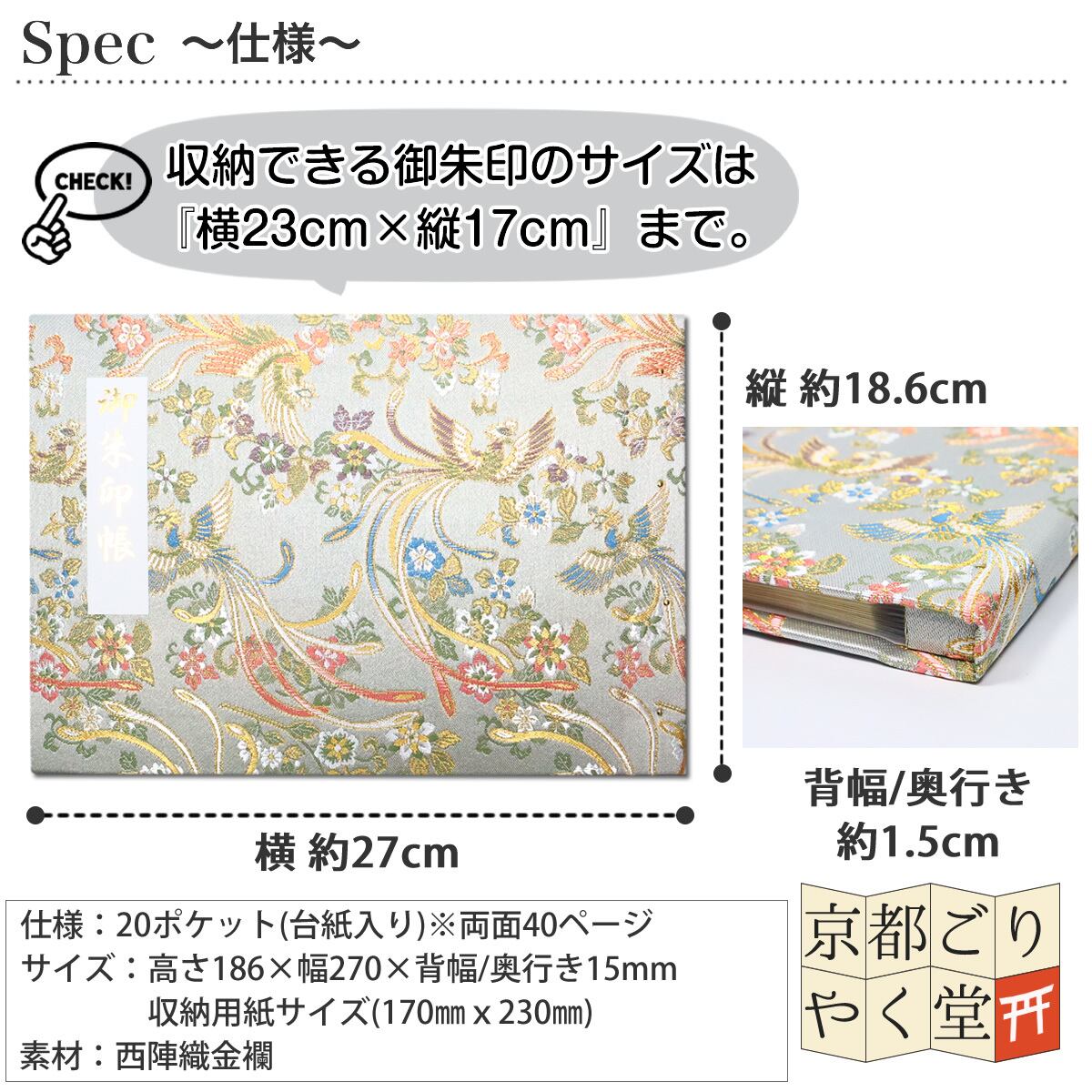 ※一部大きな御朱印は、ポケットに入らない場合があります。(収納できる御朱印サイズ:170×230mmまで)