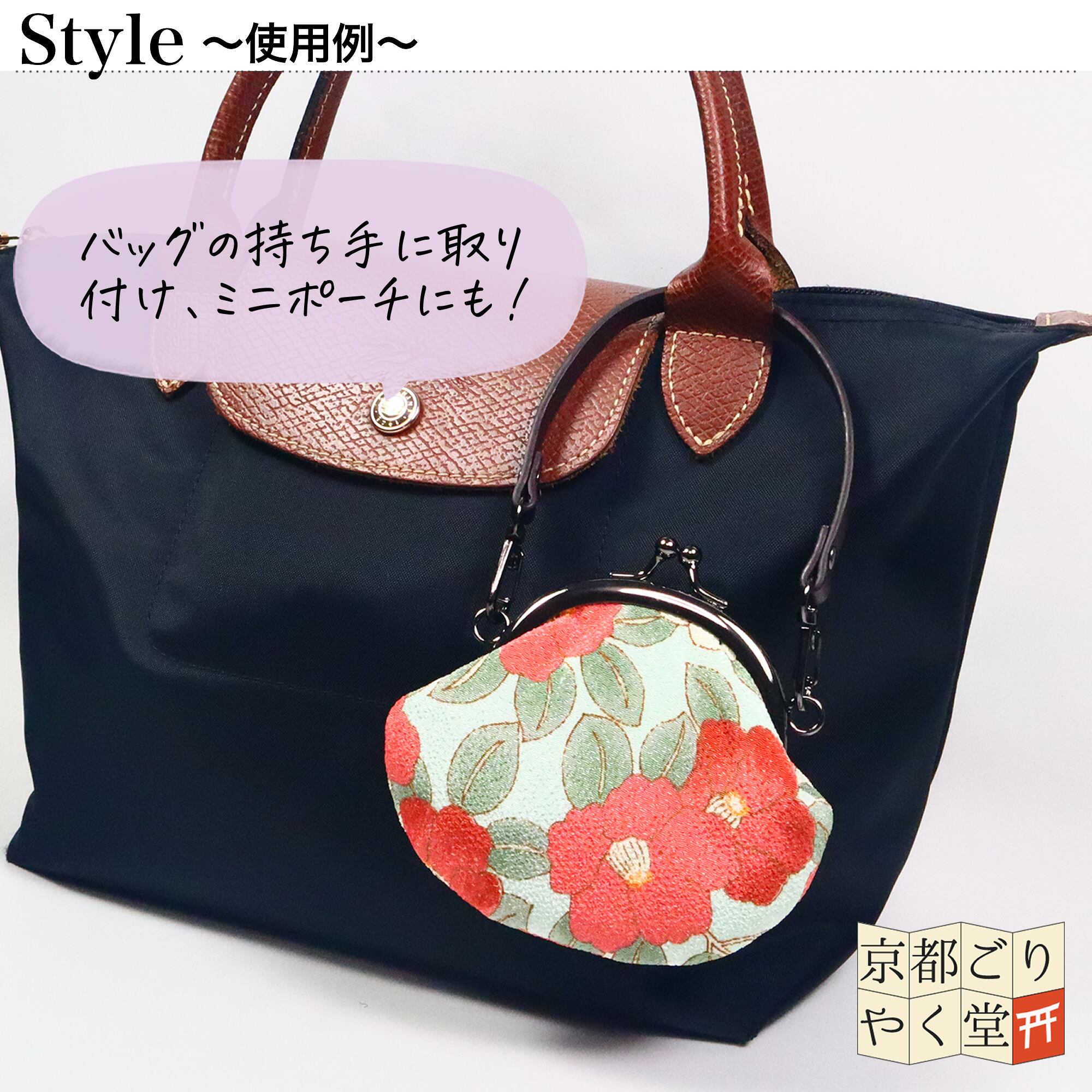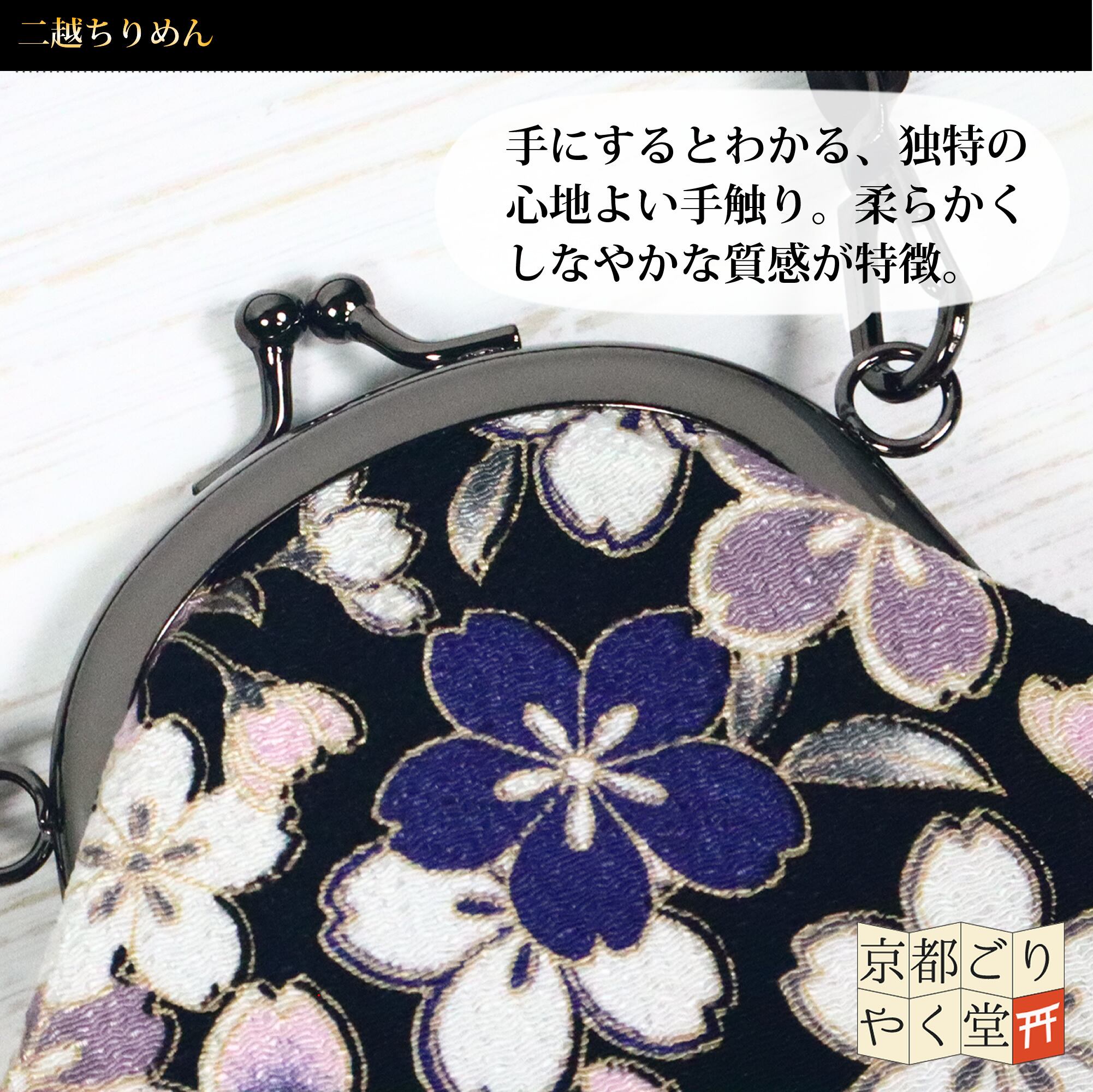 素材は、二越ちりめんを使用しているため手触りも良いがま口財布です。