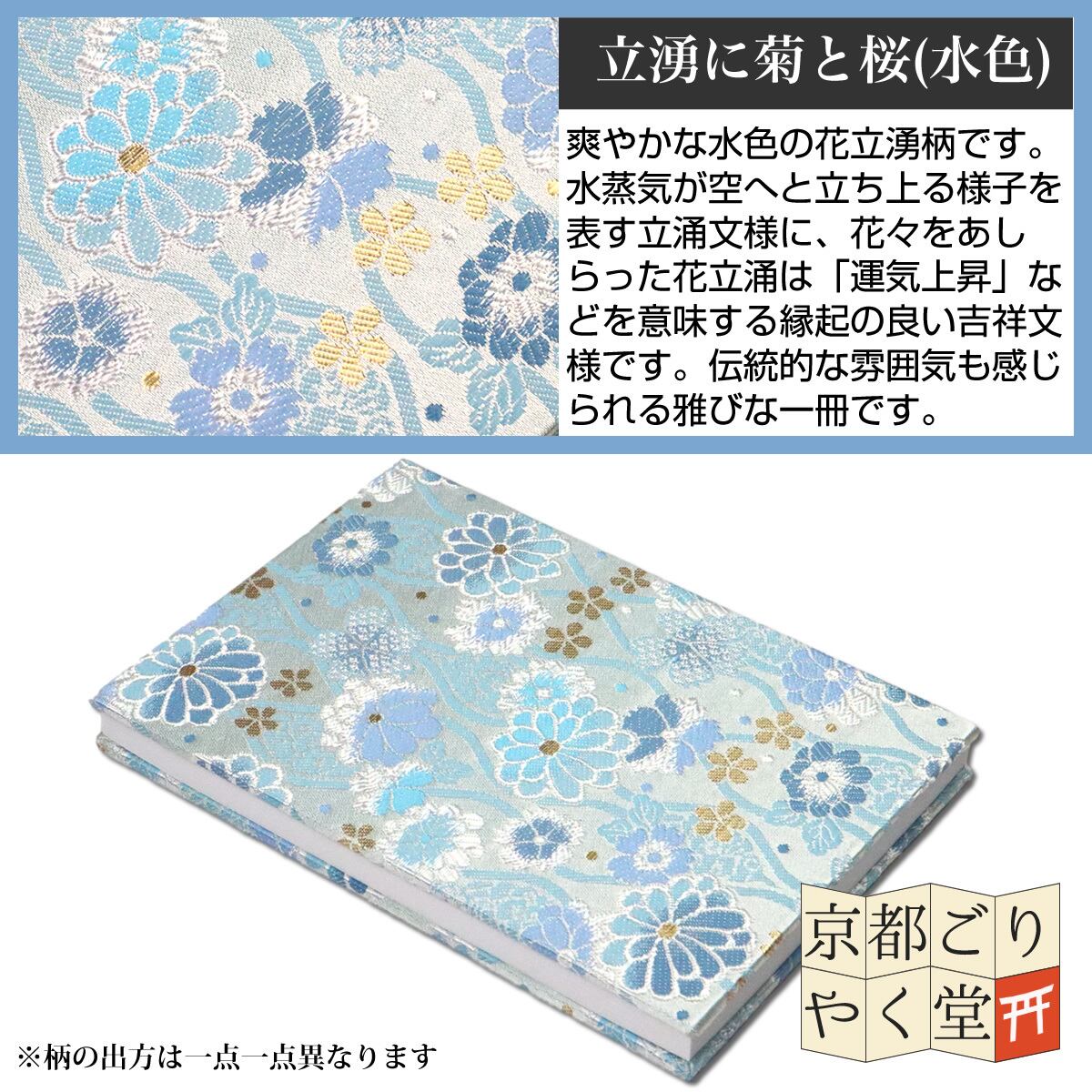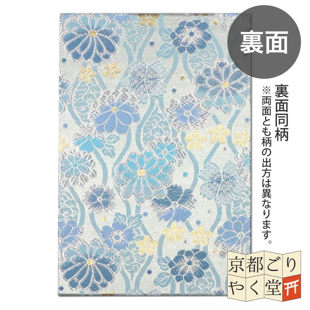 御朱印帳 京都 金襴 立湧に菊と桜(水色)大判サイズ