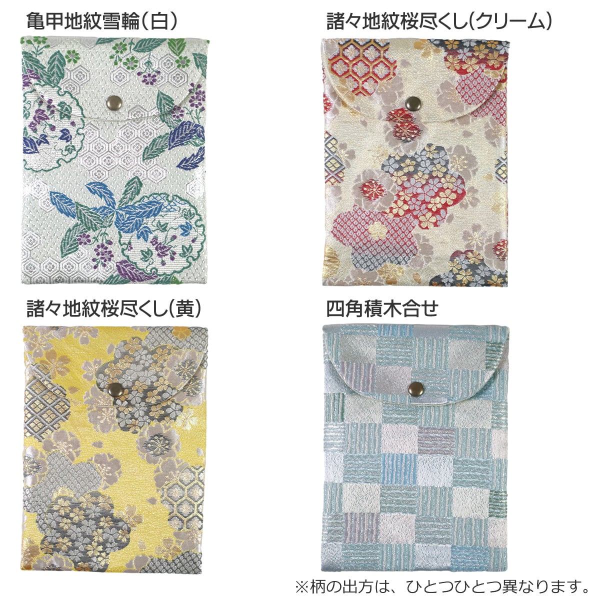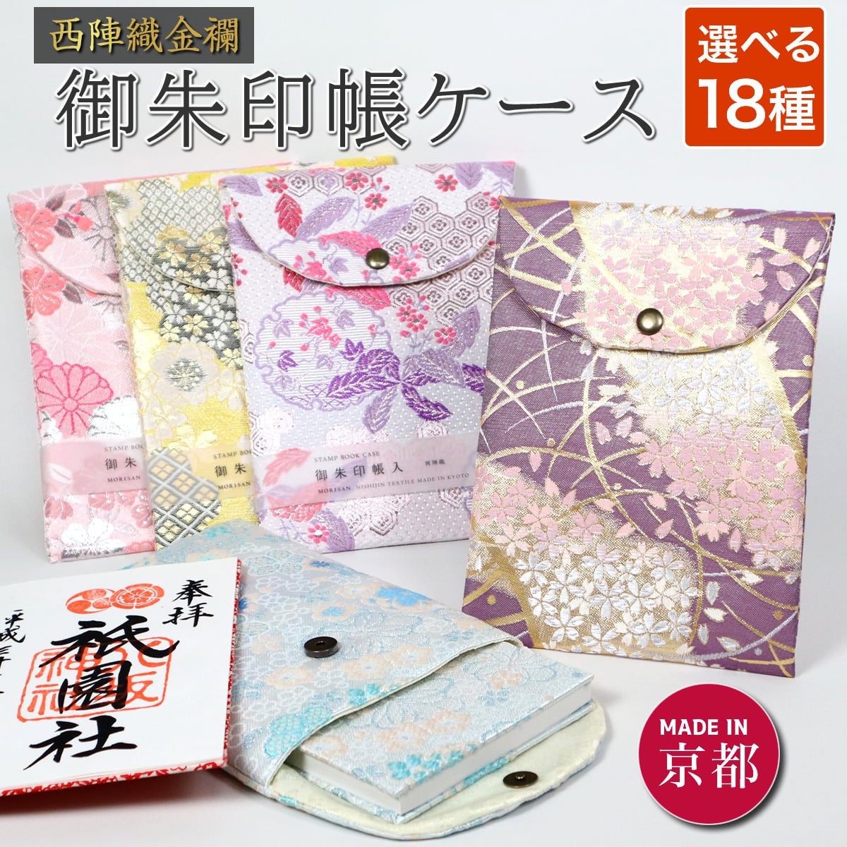 色落ちせず耐久性に優れたポリエステル100%の京都西陣織金襴の生地で仕立てた、上品さと高級感のあるご朱印帳入れです。